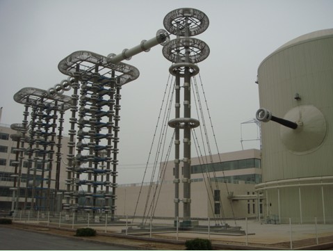 为中国电力科学院、中国南方电网公司昆明特高压基地设计制造的±1000kV直流污秽试验装置已正式通过国网和南网公司专家的验收并成功交付使用。 摄于 中国电力科学研究院昌平特高压试验基地 摄于 南方电网公司昆明特高压实验基地