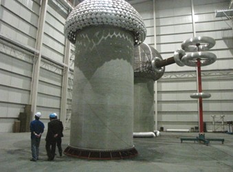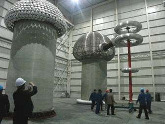 中国电力科学研究院专家在我公司的试验大厅进行考察并验收YDTCW-3000kVA/2*750kV无局放试验变压器。