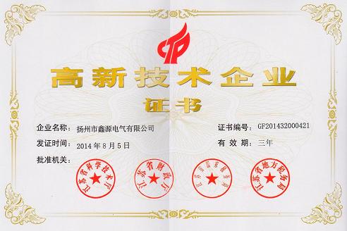 我公司已成功通过2014年高新技术企业复审,近三年来,公司不断提升研发管理水平、加大技术投入,共立项项目15项,目前达成科技成果转化率100%。现公司为“江苏省高压电线电缆测试设备工程技术研究中心”、“扬州市企业技术中心”、“清华大学深圳研究生实践基地”、“西安交通大学研究生实践基地”。拥有11项“省高新技术产品”、专利20余项;获“扬州市科技进步一等奖”等多项荣誉,承担市科技攻关、国家创新基金及省工业支撑等多个政府研发项目。