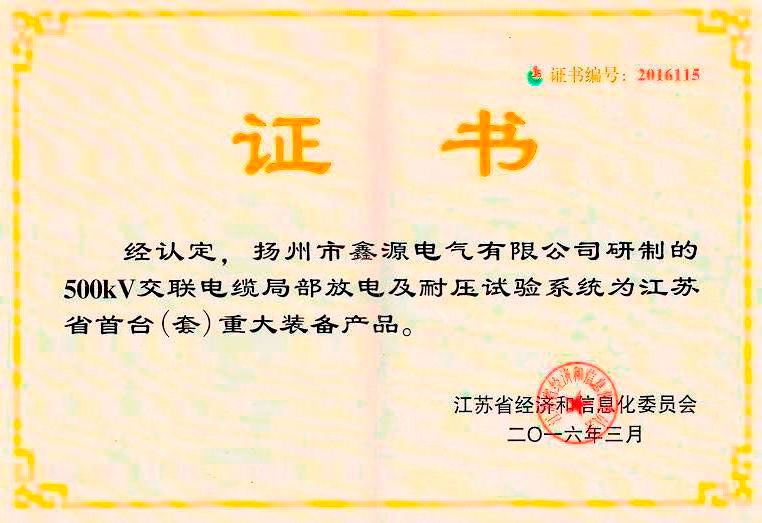 一种500kV电缆附件出厂试验检测平台-发明专利证书